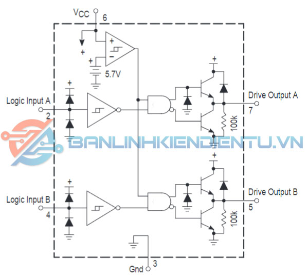 - Hai kênh độc lập với đầu ra Totem Pole 1,5 A