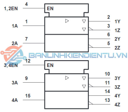 - Đầu ra tương thích với TTL, 3 trạng thái