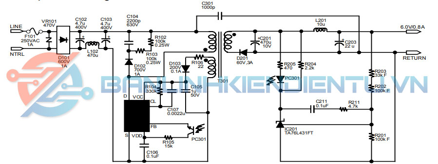 – 20mW ở 240VAC (đường dây hiện có: 30mW). - Mạch bảo vệ sạc tích hợp: tích hợp mạch bảo vệ quá dòng, quá nhiệt, ngắn mạch tải và quá áp.