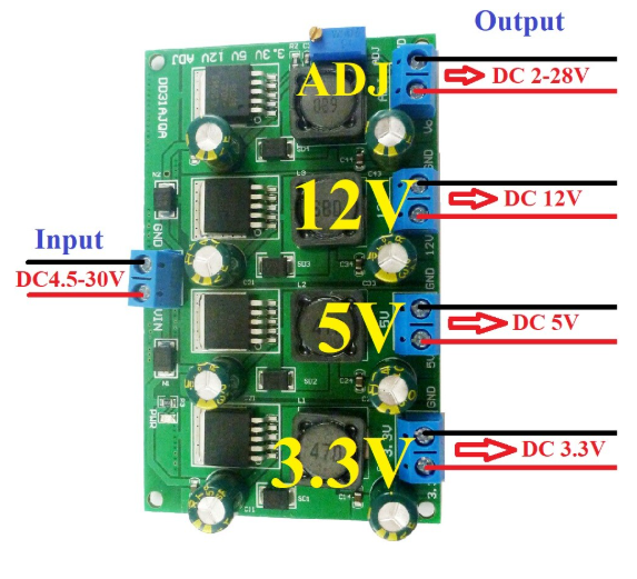 Điện áp đầu ra: 3.3V, 5V, 12V (hoặc theo phiên bản module)