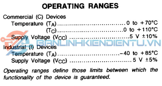 - Có sẵn dưới dạng các gói Vật mang chip chì bằng nhựa (PLCC), Vật mang chip không chì bằng gốm (LCC) và Mảng lưới chốt (PGA).