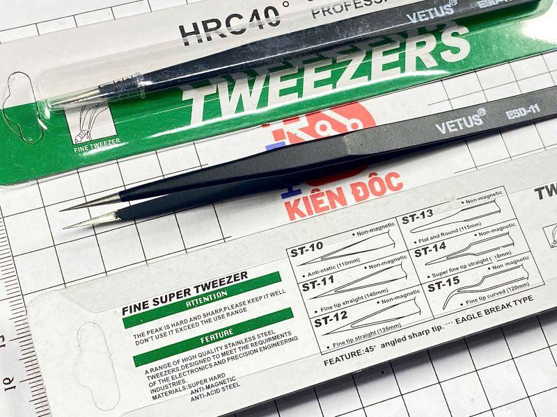 Nhíp gắp thẳng đầu nhọn HRC40 ESD-11 bằng théo không gỉ