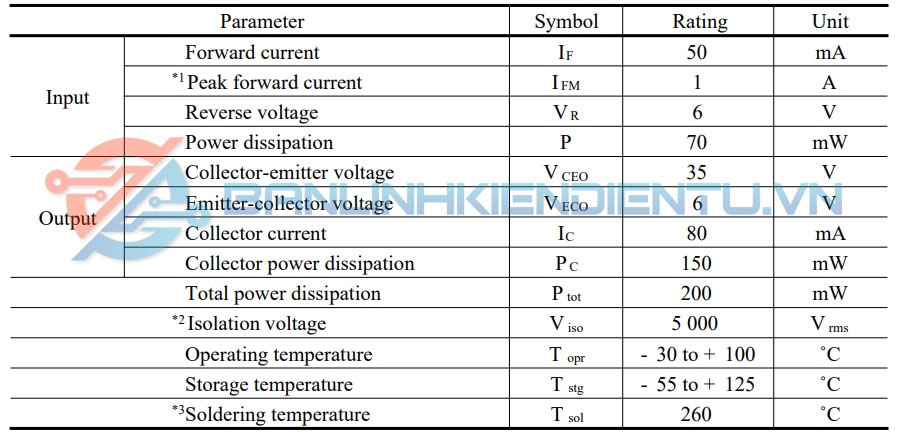 CTR (Current Transfer Ratio): 50% – 400% (tùy biến thể)