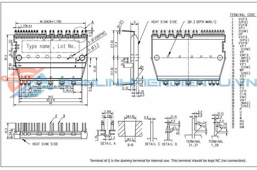 Tích hợp sẵn IGBT/MOSFET và diode tự do (freewheeling diode).