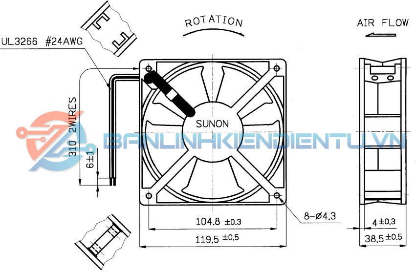 - Tốc độ quay: Được thiết kế để hoạt động với tốc độ quay ổn định, tạo ra lưu lượng không khí đủ mạnh để làm mát hiệu quả.