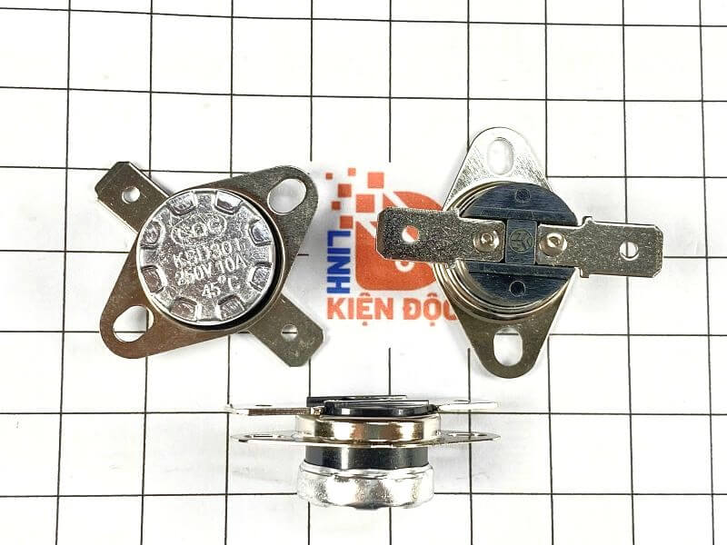 - 250VAC/10A hoặc 125VAC/15A: KSD301 có thể chịu được dòng điện và điện áp khá cao, phù hợp cho nhiều loại thiết bị gia dụng.