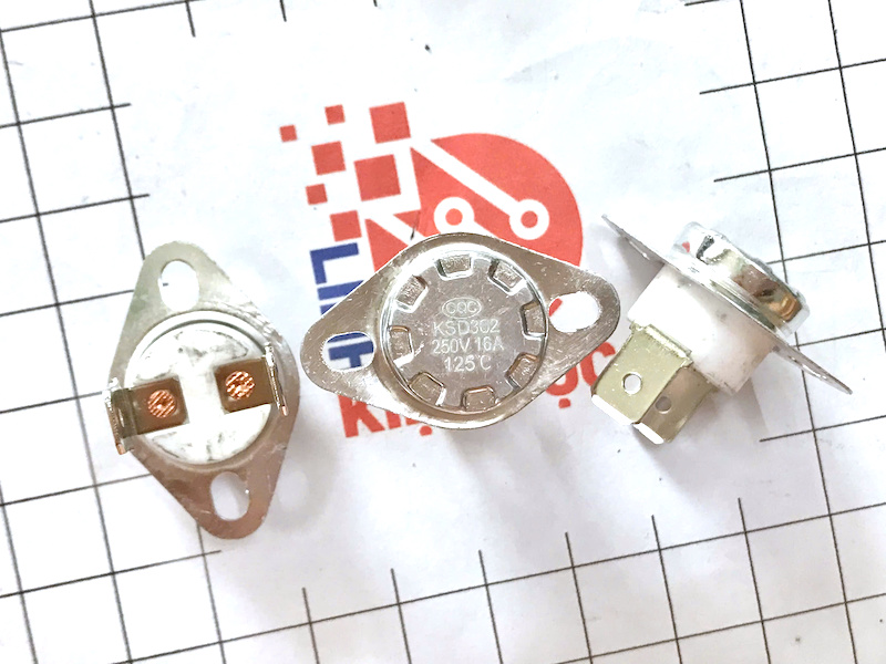 Relay nhiệt KSD302 là công tắc nhiệt cơ học bimetal, dùng để bảo vệ thiết bị điện khỏi quá nhiệt. Khi nhiệt độ đạt mức cài đặt 125°C, relay sẽ ngắt mạch điện, giúp tránh hư hỏng hoặc nguy cơ cháy nổ. Sau khi nhiệt giảm, relay tự động đóng lại, đảm bảo thiết bị hoạt động bình thường.