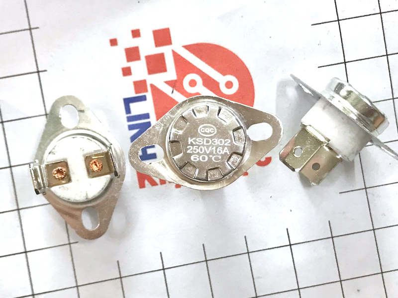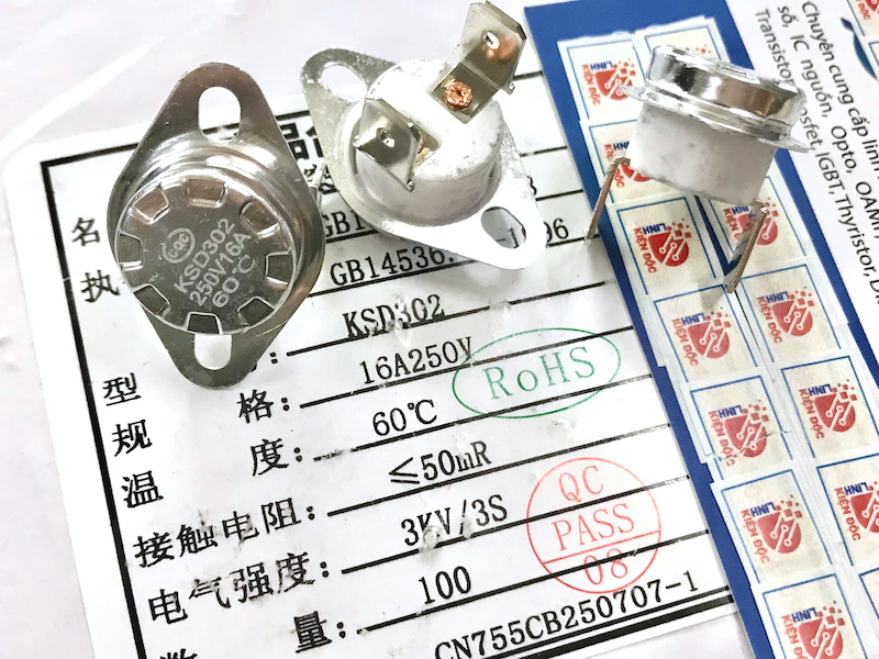 Relay nhiệt KSD302 là thiết bị bảo vệ quá nhiệt dạng cơ, sử dụng đĩa lưỡng kim để tự động đóng/ngắt mạch theo nhiệt độ. Phiên bản 60°C – thường đóng (NC) sẽ cho mạch dẫn điện khi bình thường, và ngắt ra khi thân relay đạt đến 60°C, giúp bảo vệ thiết bị khỏi tình trạng quá nhiệt. Khi nhiệt độ giảm xuống thấp hơn ngưỡng hồi phục, relay sẽ tự đóng lại, hoạt động hoàn toàn tự động không cần reset.