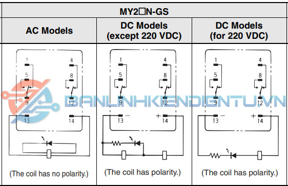 - Đèn LED Hiển Thị: Relay MY2N-GS có tích hợp đèn LED hiển thị trạng thái hoạt động, giúp dễ dàng theo dõi tình trạng của relay trong quá trình sử dụng.
