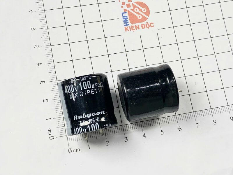 Tụ hóa 100uF 400V có dung lượng 100 microfarad (µF) và điện áp định mức 400V, đóng gói trong kích thước 25mm x 25mm. Đây là một loại tụ hóa điện phân được sản xuất bởi hãng Rubycon, thường được sử dụng trong các mạch điện tử yêu cầu khả năng lọc nguồn điện và giảm nhiễu.