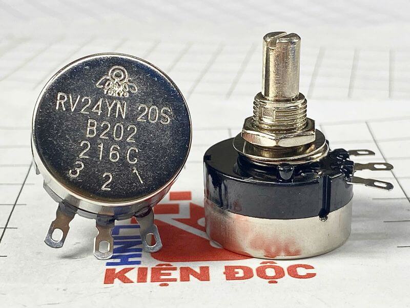 - Điện trở danh định: 2 kΩ (được ký hiệu bằng “B202”, trong đó “B” đại diện cho đặc tính tuyến tính, “202” là 20 x 10^2 = 2 kΩ).
