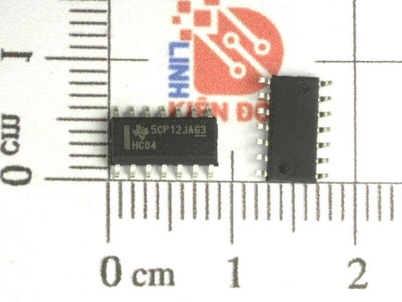 SM74HC04D là IC logic số tích hợp 6 cổng NOT độc lập, thuộc họ HC (High-Speed CMOS). IC được đóng gói dạng SOP-14 với kích thước thân rộng 3.9mm, thường dùng trong các mạch số yêu cầu tốc độ cao và tiêu thụ điện năng thấp.