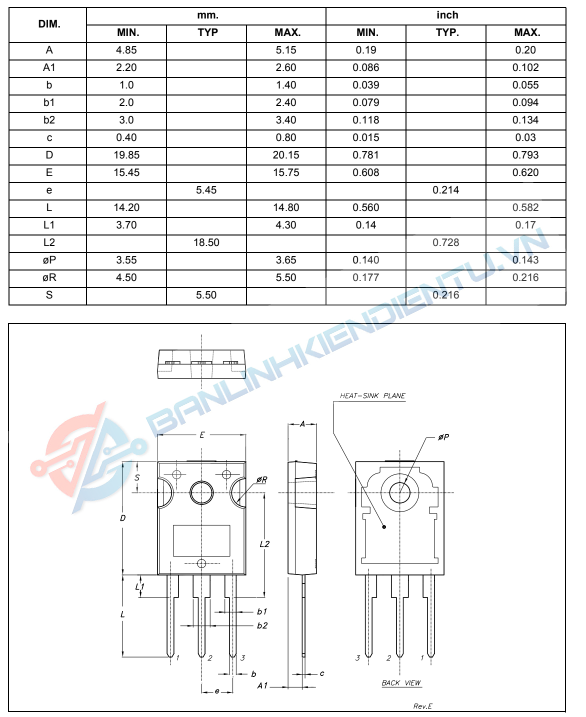 Gói TO-247 với khả năng tản nhiệt tốt, dễ gắn kèm tản nhiệt ngoài.