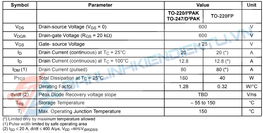 STW25NM60N (hoặc W25NM60N – ký hiệu viết tắt khác nhau nhưng cùng loại) là MOSFET kênh N công suất cao, do hãng STMicroelectronics sản xuất. Đây là loại MOSFET thuộc dòng MDmesh™ II nổi tiếng của ST, sử dụng công nghệ bán dẫn tiên tiến cho hiệu suất cao, tổn hao thấp và tốc độ chuyển mạch nhanh.
