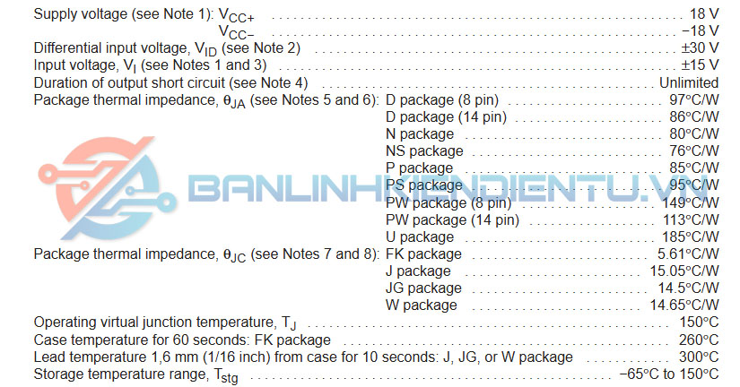 - Nguồn đối xứng: ±1.5V đến ±18V.