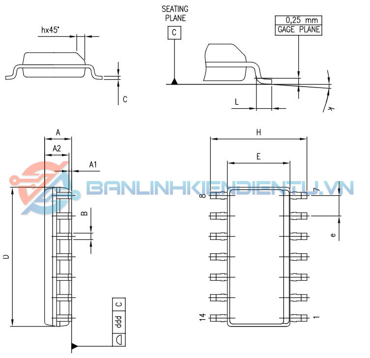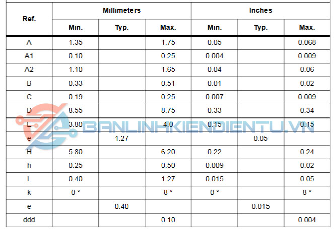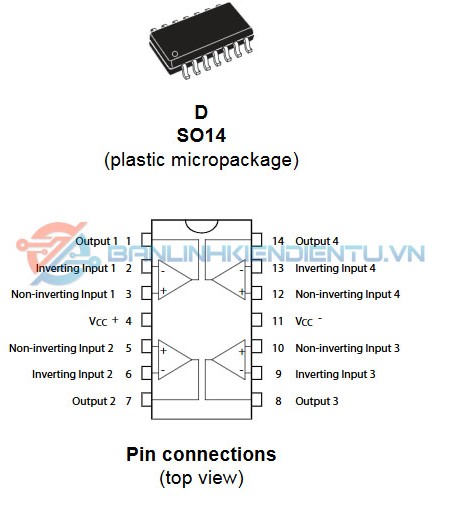 - Đóng gói SOP-14, nhỏ gọn và dễ tích hợp vào mạch.