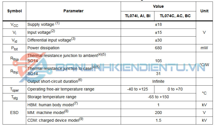 - Nguồn cung cấp: ±3V đến ±18V hoặc 6V đến 36V.