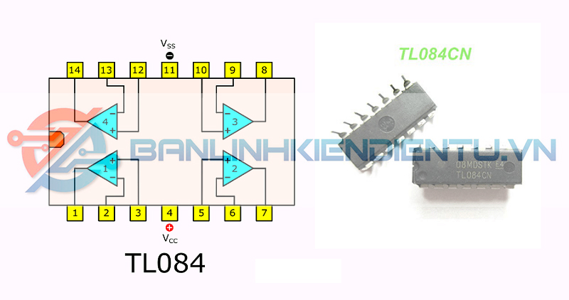 Sơ đồ chân của IC Op-Amp khuếch đại thuật toán TL084