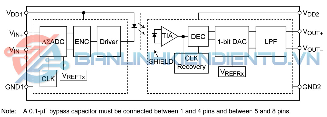 TLP7820 của bộ khuếch đại cách ly được thiết kế để cảm biến dòng điện trong ổ đĩa động cơ điện tử.