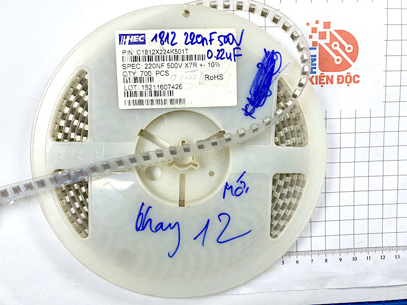 Tụ gốm dán 1812 C1812X224K501T là loại tụ điện gốm đa lớp (MLCC) dung lượng cao, với điện dung 0.22µF (220nF) và điện áp định mức lên tới 500V. Đây là lựa chọn tối ưu cho các mạch điện tử yêu cầu độ tin cậy cao, khả năng chịu áp lớn và độ ổn định trong dải nhiệt độ rộng. Bao gói chuẩn 1812 (kích thước 4.5 × 3.2mm) giúp sản phẩm phù hợp cho các thiết kế mạch công suất, thiết bị công nghiệp, nguồn switching và các hệ thống yêu cầu cách điện tốt.