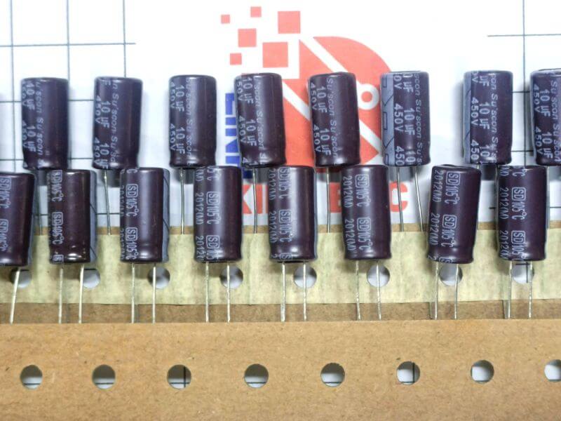 Tụ hóa 10uf 450v Su’scon 8x15mm