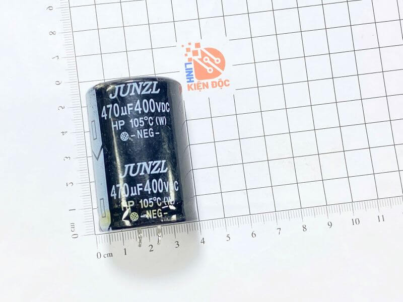 Tụ hóa 470uF 400V JUNZL kích thước 35×50mm (hàng tháo máy) là loại tụ điện phân cực dung lượng lớn, được sử dụng phổ biến trong các thiết bị điện tử công suất trung bình đến cao. Thương hiệu JUNZL thuộc dòng tụ phổ thông, thường có mặt trong các bo nguồn dân dụng và công nghiệp với mức giá dễ tiếp cận.