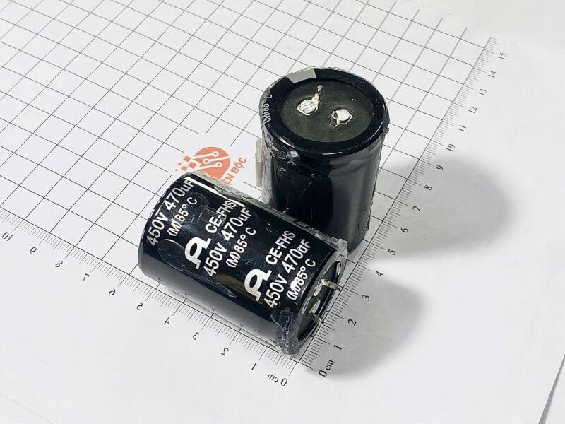 Tụ có dung lượng 470uF giúp lưu trữ năng lượng và ổn định điện áp, điện áp định mức 450V phù hợp cho các mạch điện xoay chiều sau khi chỉnh lưu. Kích thước Ø35×51mm cho thấy đây là loại tụ công suất lớn, vỏ nhôm chắc chắn, khả năng tản nhiệt tốt. Vì là hàng tháo máy nên có giá thành rẻ hơn, vẫn sử dụng tốt nếu còn chất lượng ổn định.