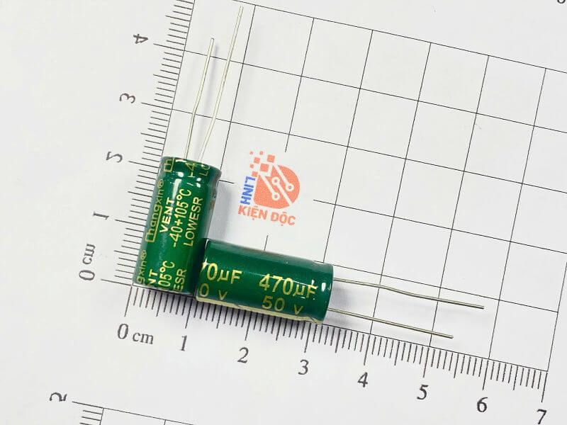 - Dung lượng vừa phải và điện áp thấp: Với dung lượng 470µF và điện áp làm việc 50V, tụ này rất thích hợp cho các mạch yêu cầu ổn định nguồn điện mà không cần dung lượng quá lớn.
