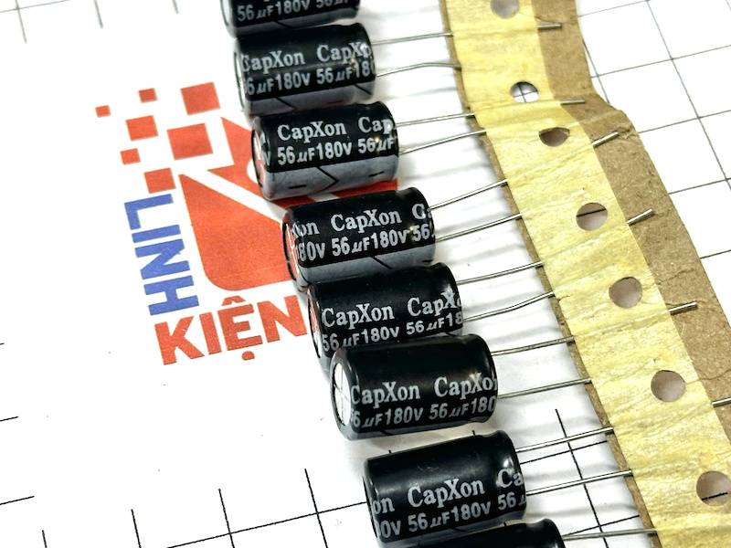 Tụ hóa 56uF 180V có dung lượng 56 microfarad (µF) và điện áp định mức 180V, đóng gói trong kích thước 10mm x 17mm. Đây là một loại tụ hóa điện phân, thường được sử dụng trong các mạch điện tử yêu cầu khả năng lọc nguồn điện và giảm nhiễu.