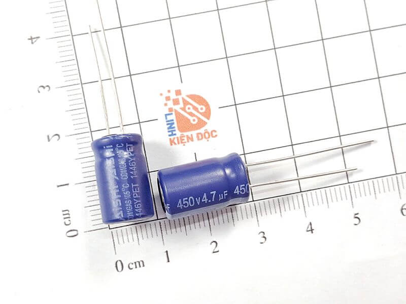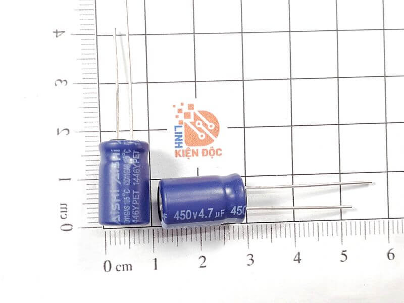 Tụ hóa 4.7uF 450V có dung lượng 4.7 microfarad (µF) và điện áp định mức 450V, đóng gói trong kích thước 10mm x 16mm. Đây là một loại tụ hóa điện phân được sản xuất bởi hãng AiSHi, thường được sử dụng trong các mạch điện tử yêu cầu khả năng lọc nguồn điện và giảm nhiễu.