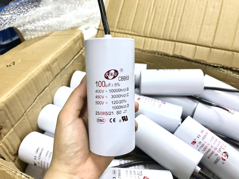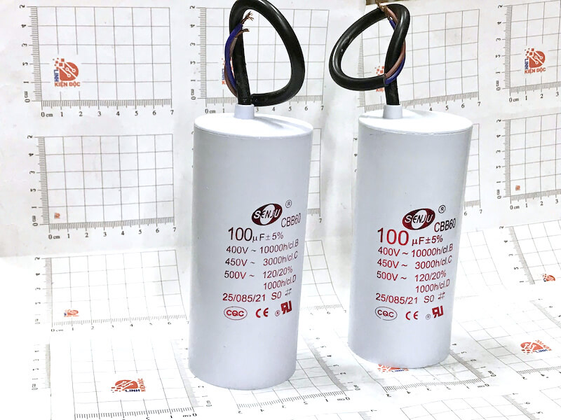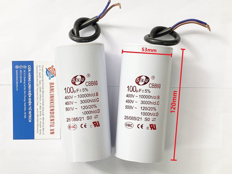 Tụ khởi động CBB60 100uF 450V SENJU (màu trắng) 53x120mm