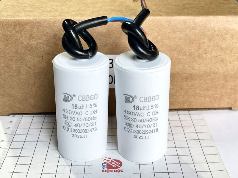 Tụ khởi động CBB60 18uF 450V SMILER là tụ điện chuyên dùng cho động cơ điện 1 pha, có nhiệm vụ tạo mô-men khởi động lớn, giúp motor khởi động nhanh, chạy khỏe và ổn định. Dòng CBB60 thường được sử dụng trong máy bơm nước, máy nén nhỏ, quạt công suất lớn và thiết bị điện lạnh.
