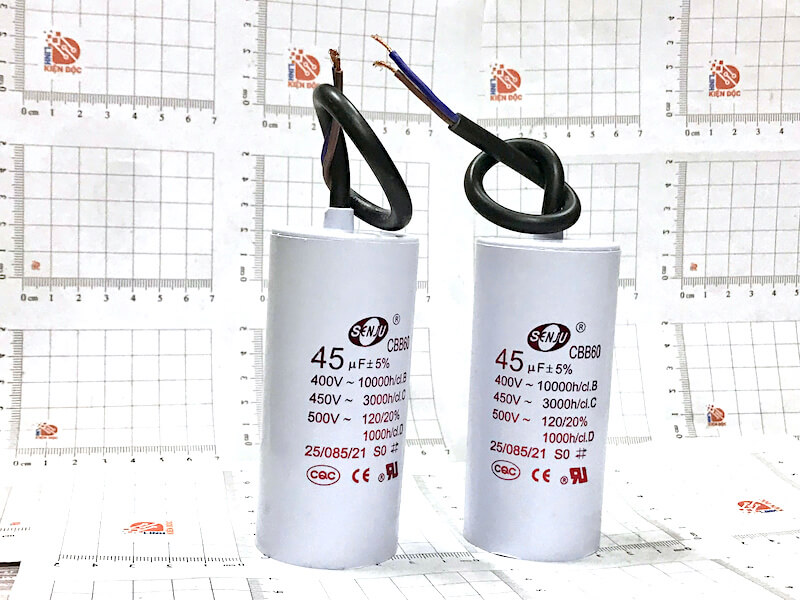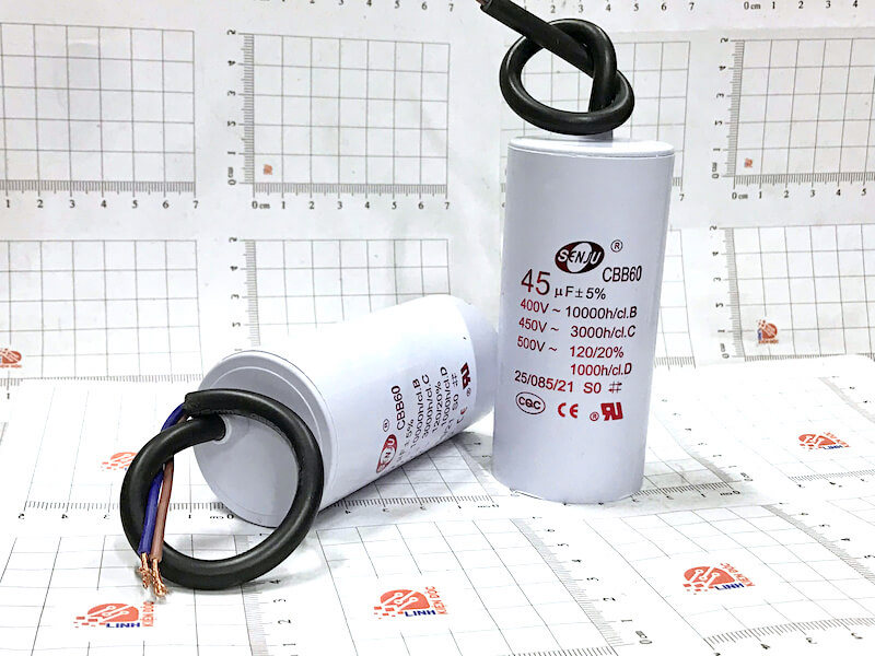 Tụ khởi động CBB60 45uF 450V SENJU kích thước 95x45mm