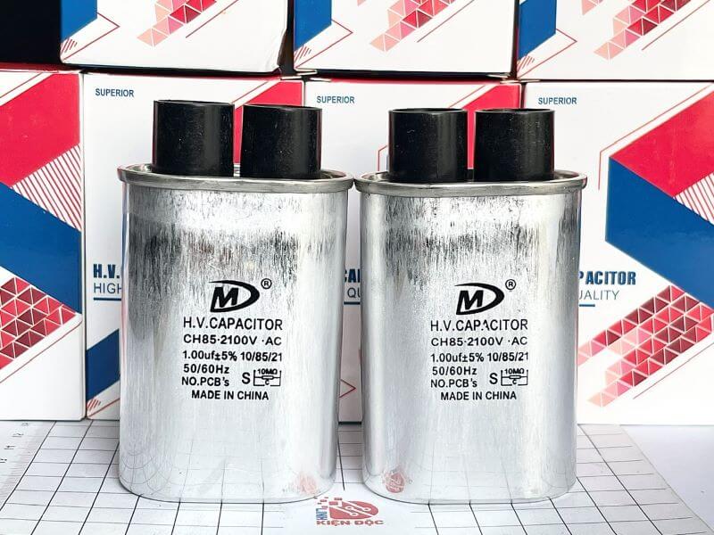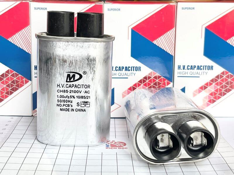 Tụ lò vi sóng 1uF 2100V là tụ điện cao áp chuyên dùng trong mạch nguồn cao áp của lò vi sóng. Tụ kết hợp với diode cao áp và biến áp cao áp để tạo điện áp cao cấp cho magnetron hoạt động, giúp lò vi sóng sinh nhiệt làm nóng thực phẩm.