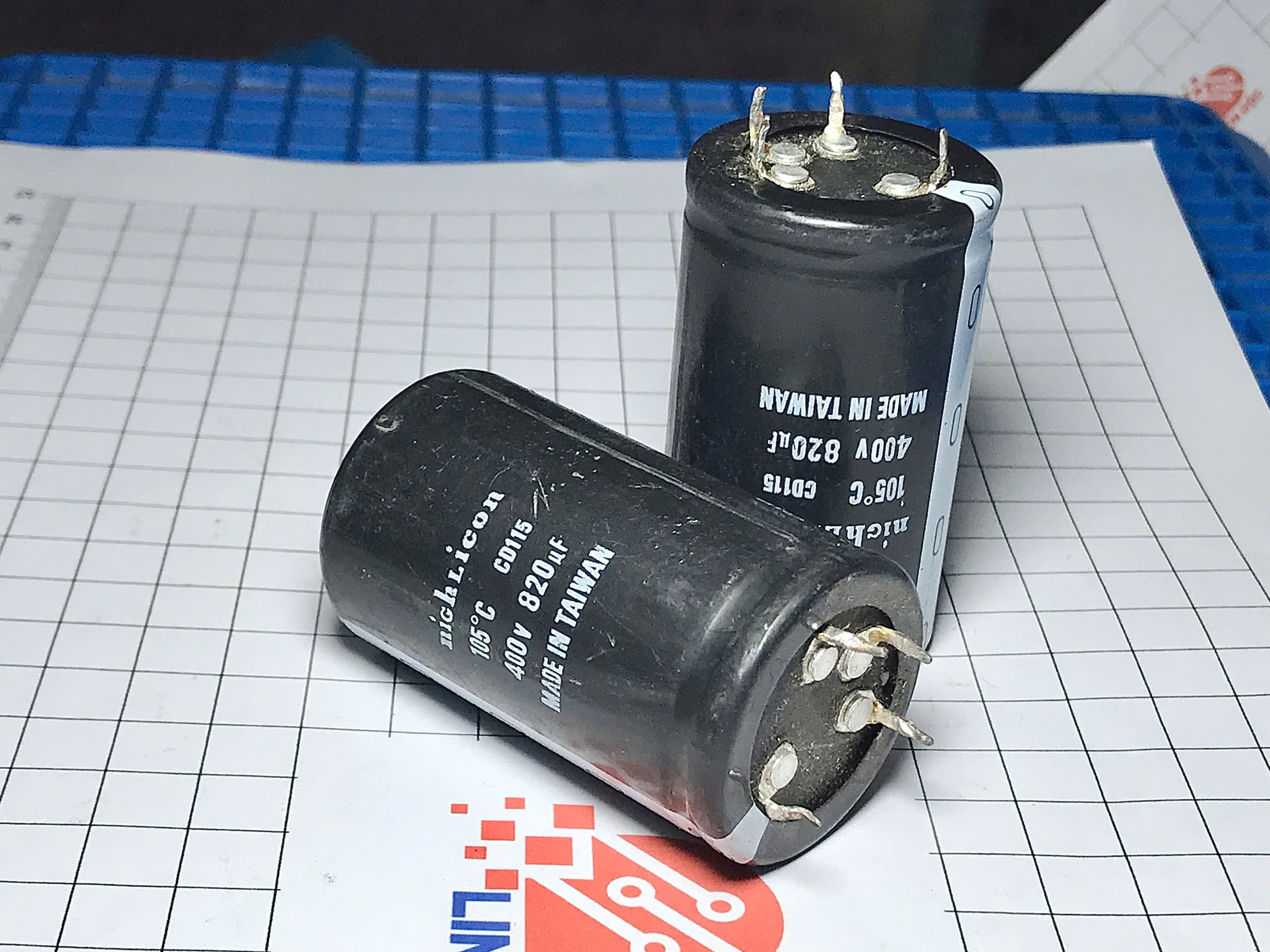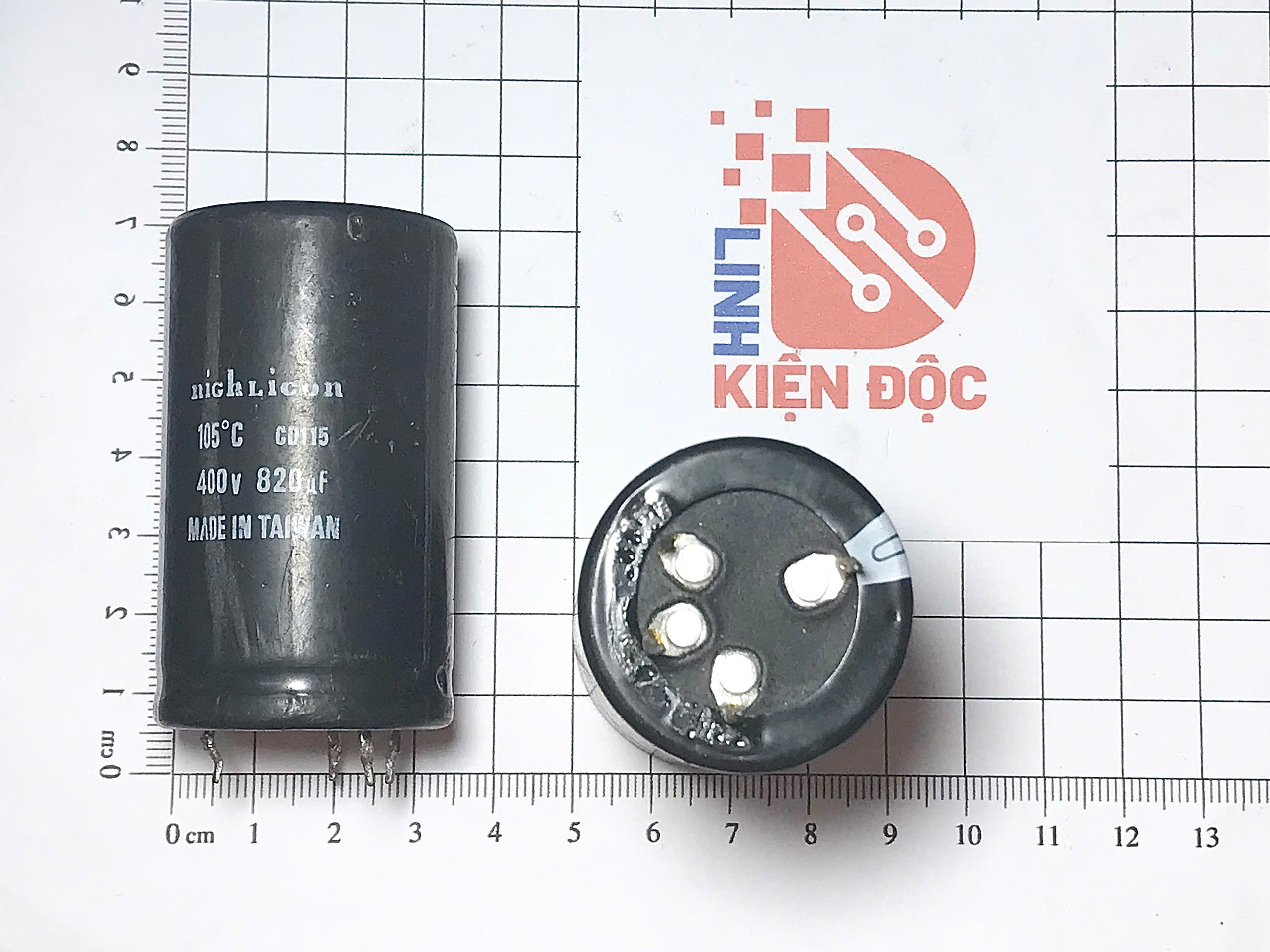 Tụ lọc nguồn 820uF 400V 4 chân kích thước 61x35mm tháo máy