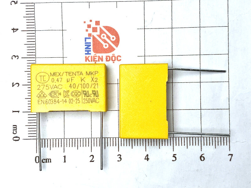 Tụ lọc nguồn MEX/TENTA 0.47uF 275VAC khoảng cách chân 22mm