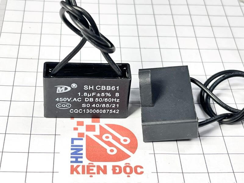 Tụ quạt CBB61 1.8µF 450VAC là loại tụ điện không phân cực, chuyên dùng trong quạt điện, động cơ một pha và các thiết bị điện gia dụng. Tụ có khả năng chịu điện áp cao, giúp động cơ khởi động nhanh, vận hành ổn định và giảm rung lắc.
