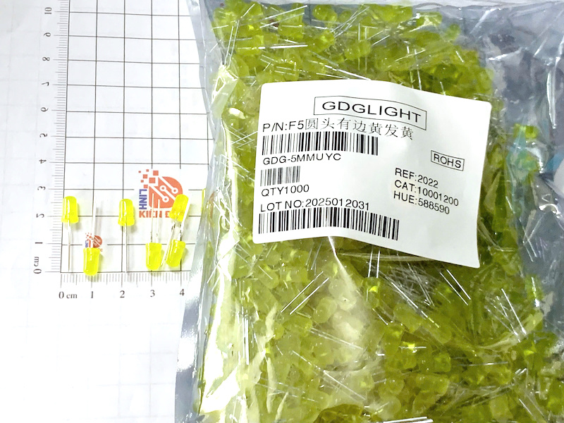 (Túi 10 chiếc) Led F5 5mm chân ngắn màu Vàng
