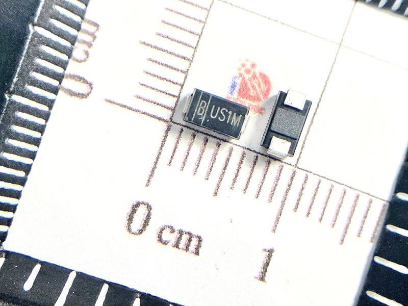 - Điện áp rơi thấp: US1M có điện áp rơi (forward voltage drop) thấp, thường khoảng 0.9V tại dòng 1A, giúp giảm tổn thất năng lượng trong quá trình hoạt động.